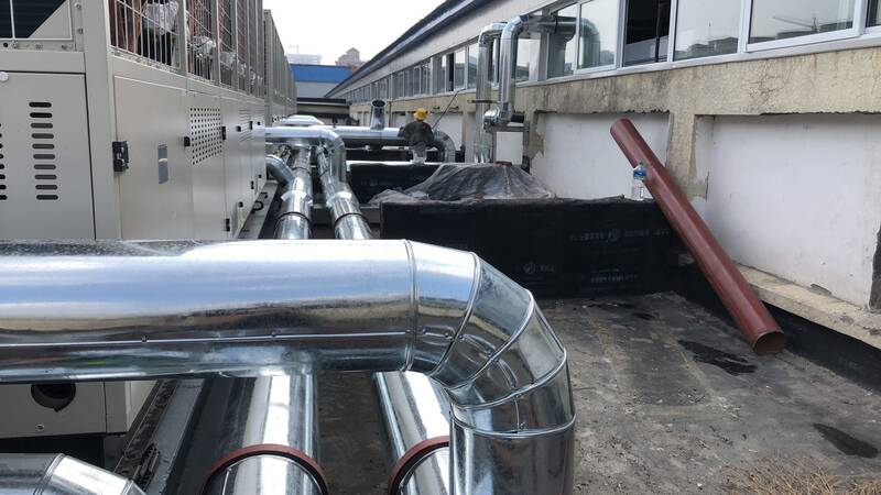 本項目為室外位于樓頂?shù)目照{(diào)模塊機(jī)組的管道防腐保溫工程。
